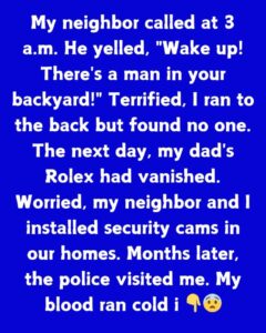 There’s a man in your backyard!” Terrified, I ran to the back but found no one. The next day, my dad’s Rolex had vanished. Worried, my neighbor…