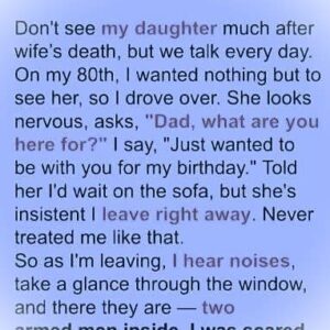 Don’t see my daughter much after wife’s death, but we talk every day. On my 80th, I wanted nothing but to see her, so I drove over….